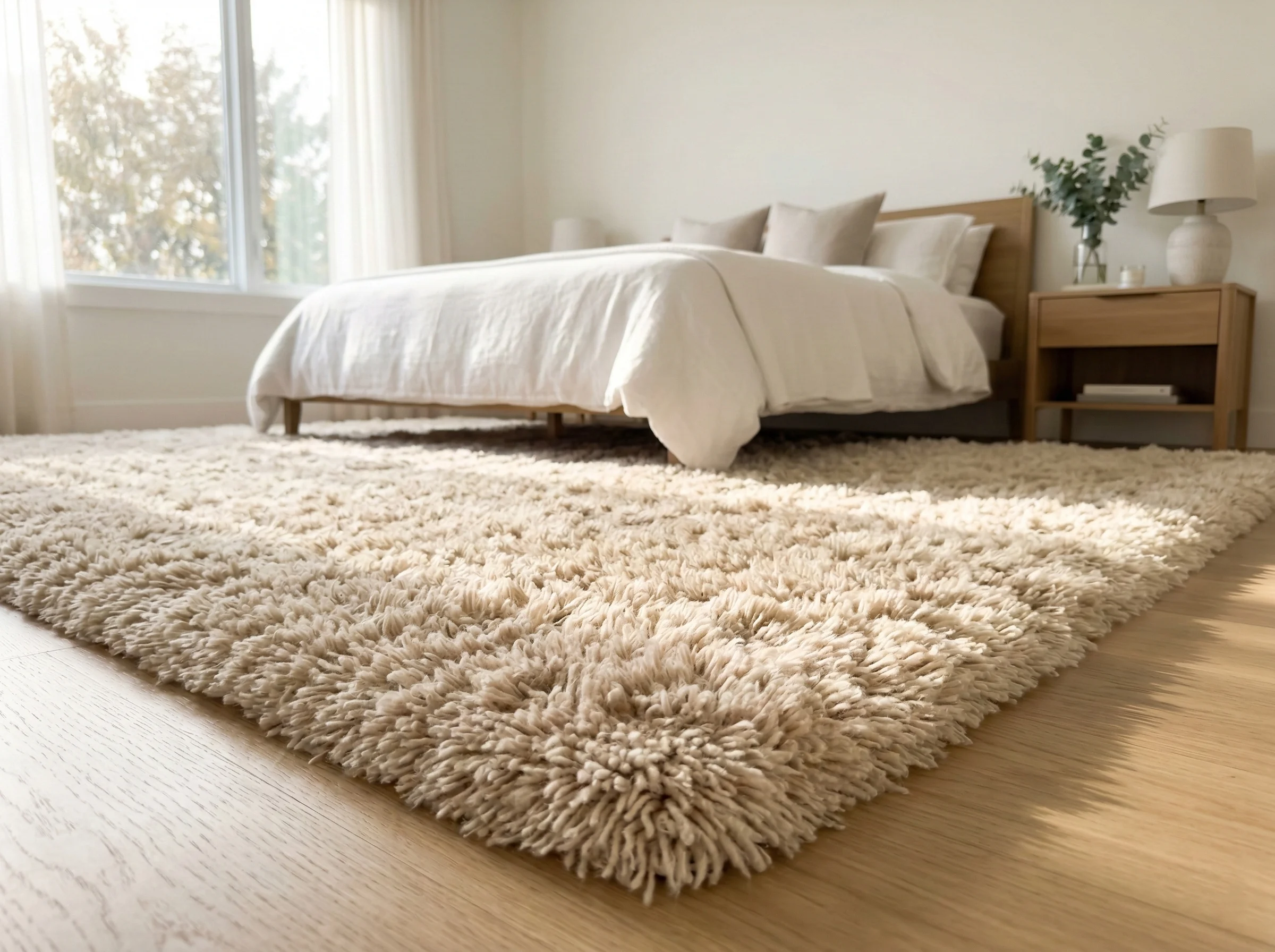Le tapis de chambre a une problématique différente : l'hygiène. Vous dormez 7-8 heures par nuit à proximité de ce tapis. Les acariens, squames de peau et poussières s'y accumulent, pouvant aggraver allergies et problèmes respiratoires.